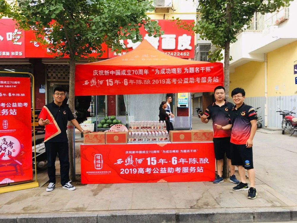2019年西凤酒助力高考,爱心护航,为高考学子和高考服务人员发放矿泉水,黎水定制水单次供水达3000000瓶。