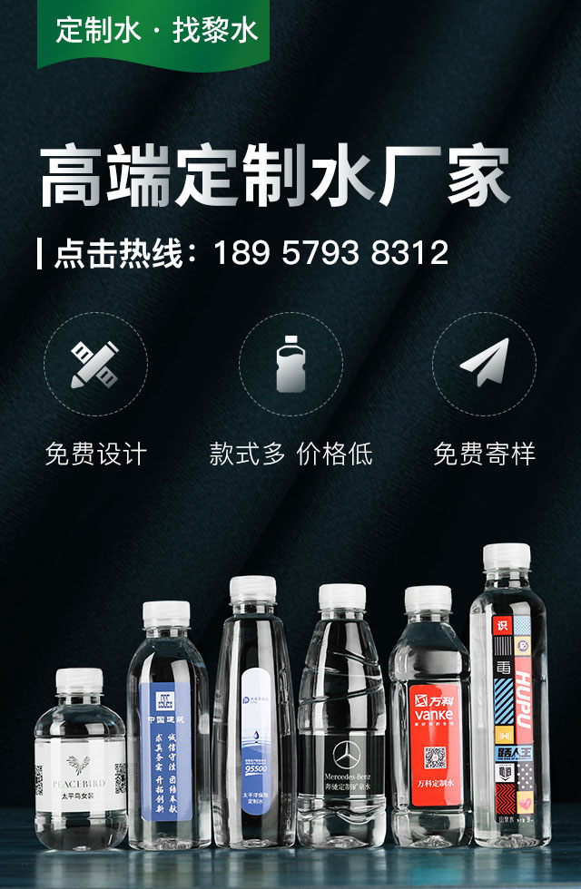 定制水是指可将企业logo、单位信息等资料印刷在外包装上,成为企事业单位视觉形象传达的有效载体,从而提升单位形象。今天和黎水定制水小编一起来了解一下,定制水常见的三种定制形式。一、LOGO定制LOGO定制是定制水重要的一种。对于设计没有过多的要求,简单明了地体现一个企业。而且适用性强,礼品、周年纪念、企业品牌及文化宣传等等都适用。简简单单的定制水